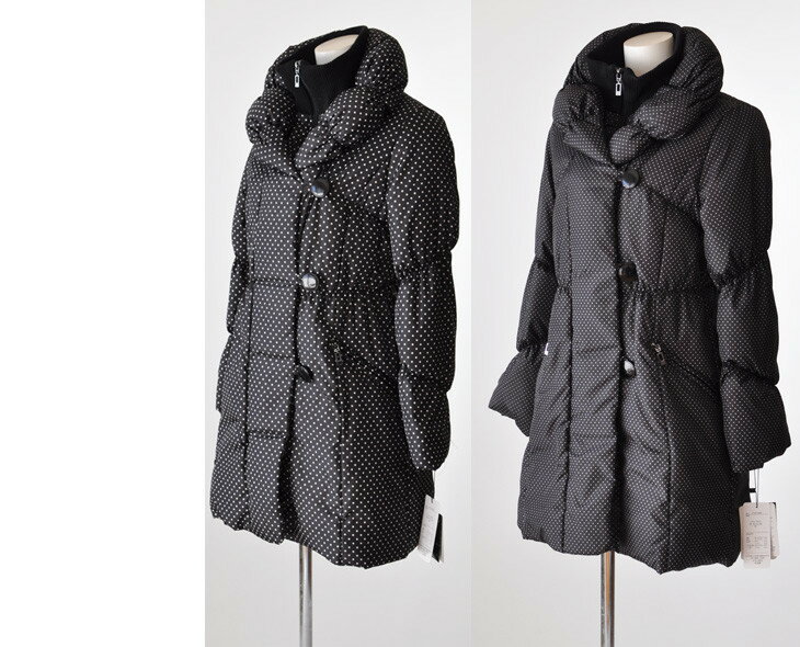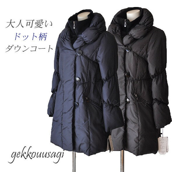 【マスク10枚プレゼント】 Mサイズ/Lサイズ 最新モデル お洒落なドット柄ダウンコート 防寒性抜群の内側ファスナーの二重構造ショールカラ・首筋袖口リブ シャーリング入りダウンコート ダウン80%フェザー20% 【紺色・黒】215(AU2F4D)